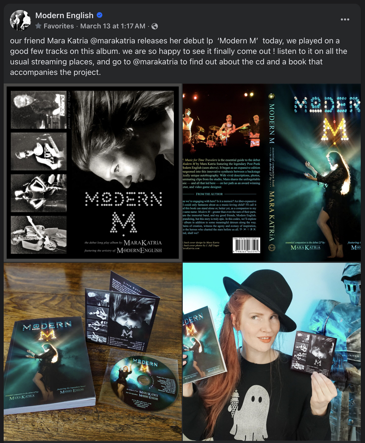 ► November 27, 2025 BOOK ANNOUNCEMENT! After some health obstacles for Mara, we’re glad to say that the future of her debut LP featuring the post-punk pioneers is looking bright for early 2026! As part of the ongoing rehabilitation process, Mara has penned an essential guide book that acts as gorgeously expanded liner-notes for the album entitled Modern M: Music for Time Travelers!